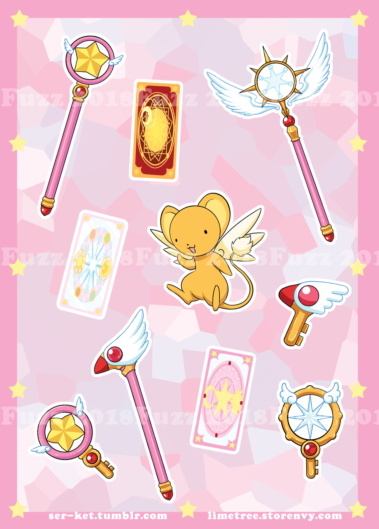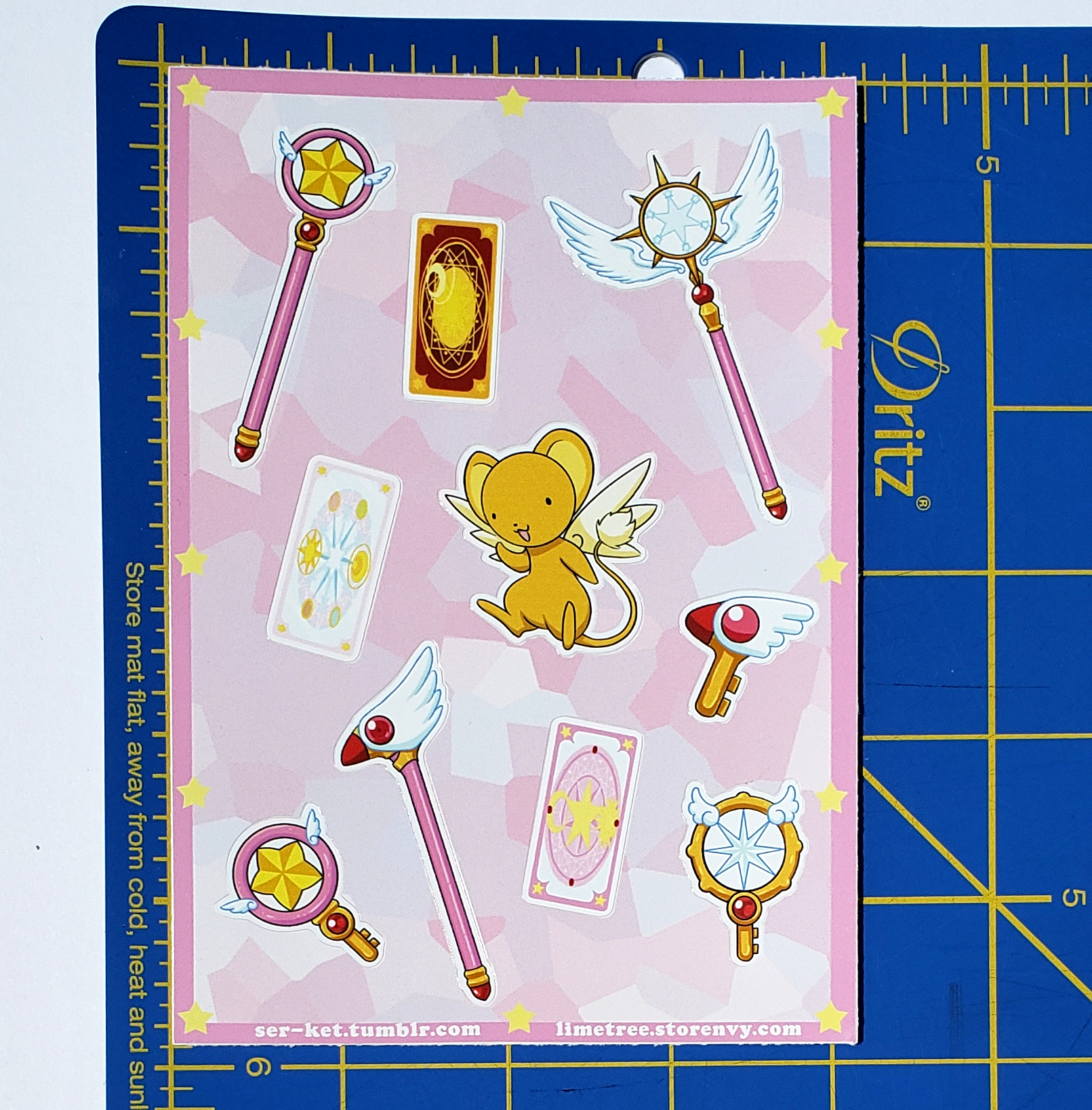 ? Kiss-cut vinyl sticker sheet featuring items and cards from Cardcaptor Sakura. ?